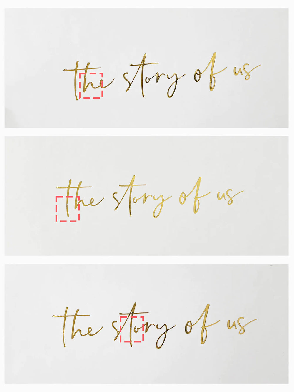 Hand embossed in our UK studio, each memory book has "the story of us" on the cover in elegant gold foil. For this discounted listing, you may notice tiny areas where the foil hasn't transferred properly or some very light scuffs on the cover. Defects will vary per item. Aside from this, everything is perfect - we just hate unnecessary waste!