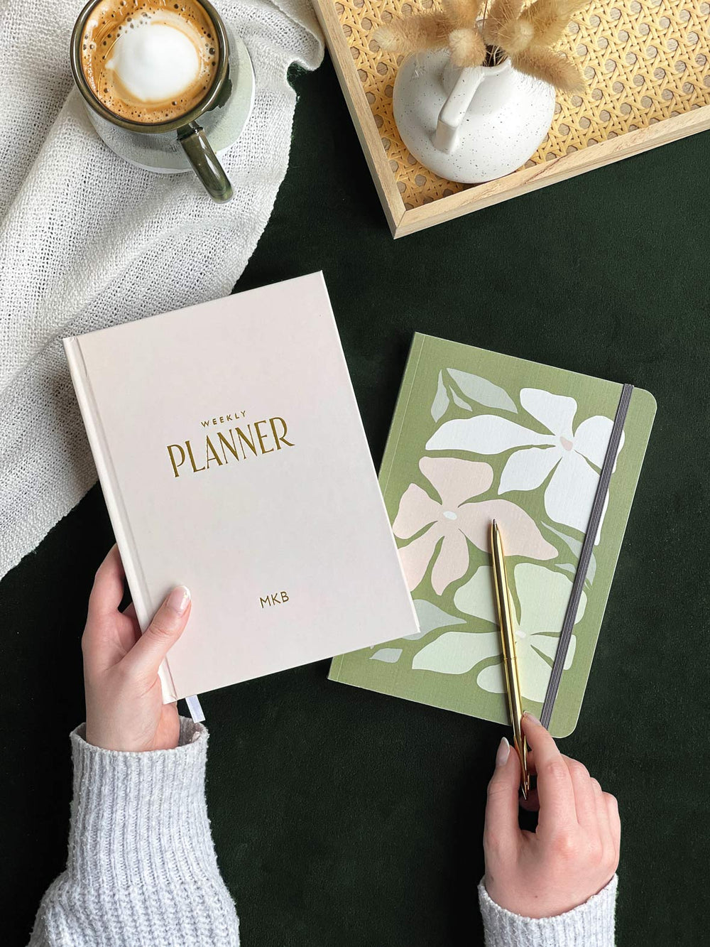 A stationery gift set designed to fit right through your letterbox - mix and match your weekly planner & notebook to suit your style. Complete with free personalisation and co-ordinated gold pen.